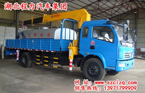 东风多利卡随车吊带洒水车|直臂式洒水运水车|园林作业绿化车