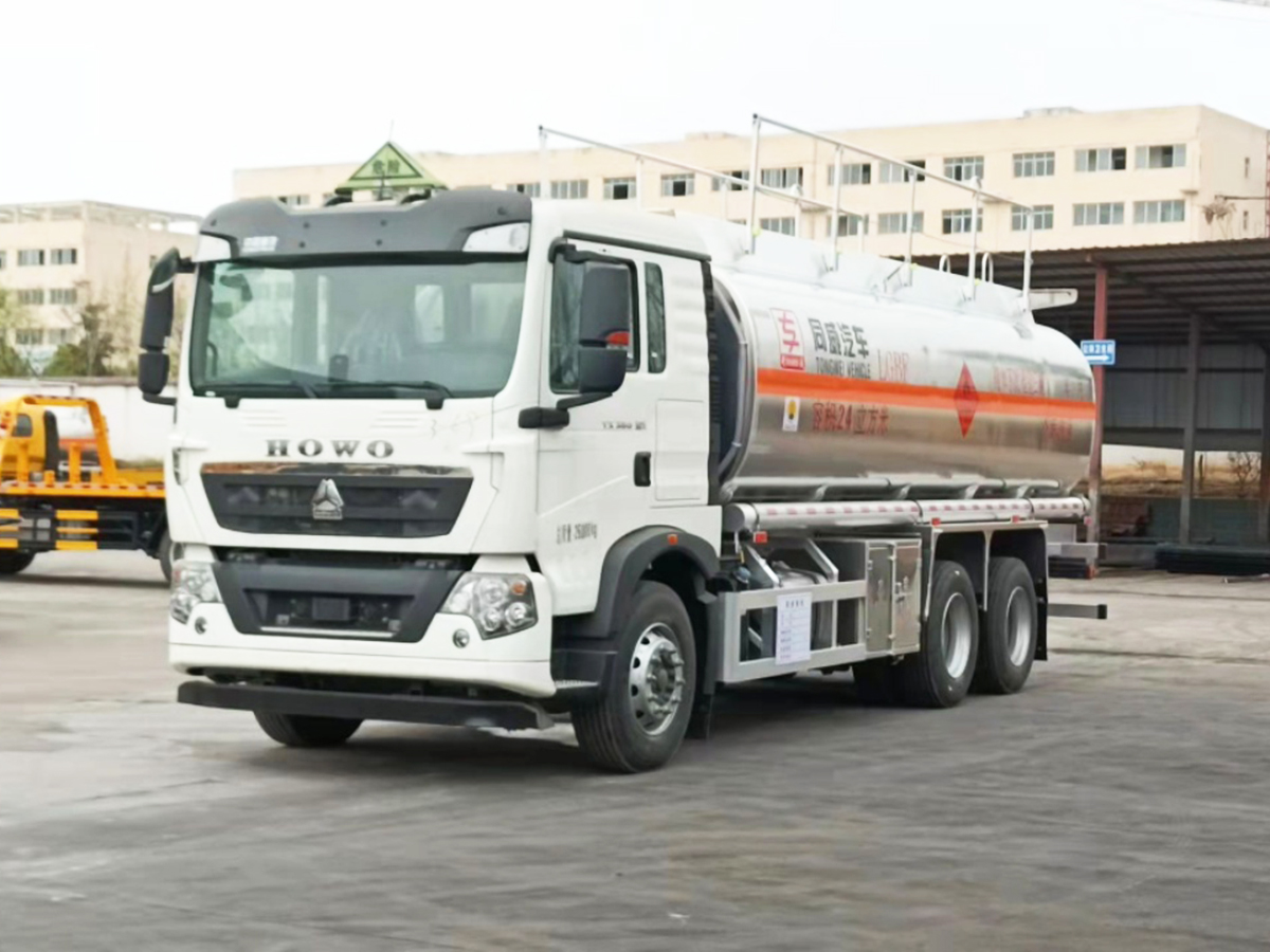 重汽豪沃后双桥铝合金油罐车,总质量26000.铝合金罐体,24方/25/26/20.1方罐体.轴距4575+1400 ,350马力,9档变速箱,295真空胎