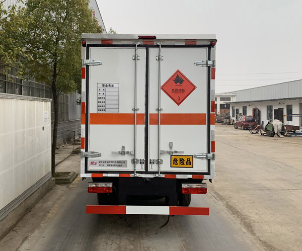【厢体配置】整车尺寸:5430×1800×2700,箱体尺寸:3300×1700×1700,厢体为双层金属结构,外板采用静电屏蔽效应的冷轧钢板,中间附以 B1 级阻燃泡沫,内饰采用铝板,内部采用金属骨架,厢体内四周采用铝材压边,厢内两侧上方安装防雨通气孔。底板为防 滑花纹板3mm(上铺设防静电胶皮),厢体右侧开一个单开侧门,锁为镀锌锁件,厢内安装固定运载物的卧环,货箱内部带防燃烟雾报**器,门框加装防盗报**感应器。整车国标反光标示及**告标志 (随车工具,灭火器,三角顶灯,危险品标识,拖地静电带),其他按 照公告标准制作。