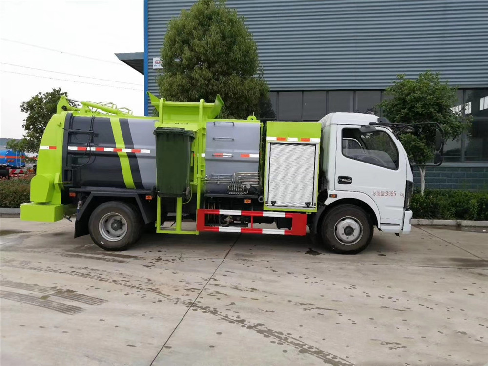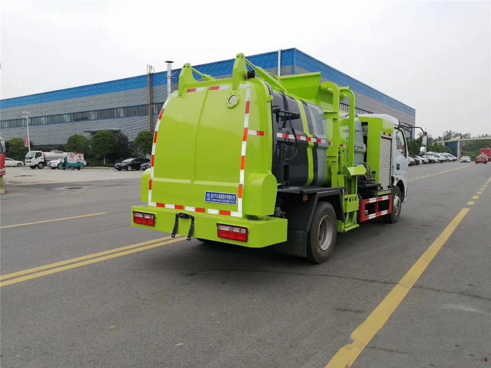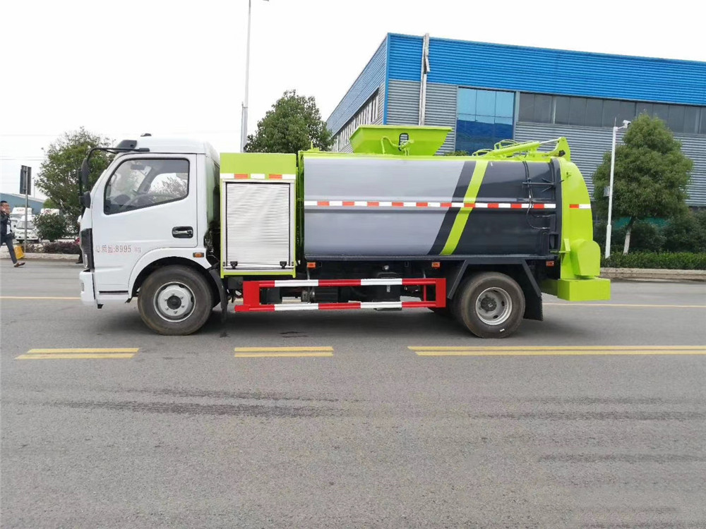标配:1.弧形罐体,边四底五/边五底六。2.长源/皖液油泵,长源/中梅多路阀,知名液压油缸。3.全推铲卸料(不带举升功能),具有干湿分离功能。液压后盖,后盖配防腐硅胶密封条。4.后门液压锁紧5.链条式提升机,可挂120/240升标准塑料垃圾桶。进料口盖液压开关。6.驾驶室内电控(提升机外部手动**),后门锁紧与后盖开关的操作具有防误操作。7.箱体带清洗装置(液压马达带动高压泵、带水箱)。