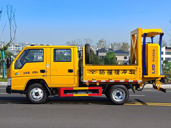 上装配置:箱体采用国标优质板材制作,箱体后部防撞缓冲模块采用国际知名技术产品畅行达70K/80K防撞缓冲模块,防撞缓冲吸能模块主要由车载防撞缓冲垫和导向标志架组成,充当施工作业车辆后方的缓冲卫士。如若发生追尾事故,能够在肇事车辆和前方施工作业区域之间构建一个缓冲区域,通过机具结构变形吸收撞击的能量,**限度地降低被保护人员及设备遭到碰撞的几率。高性能液压系统,可实现快速举升和落下操作,安全稳定高效。